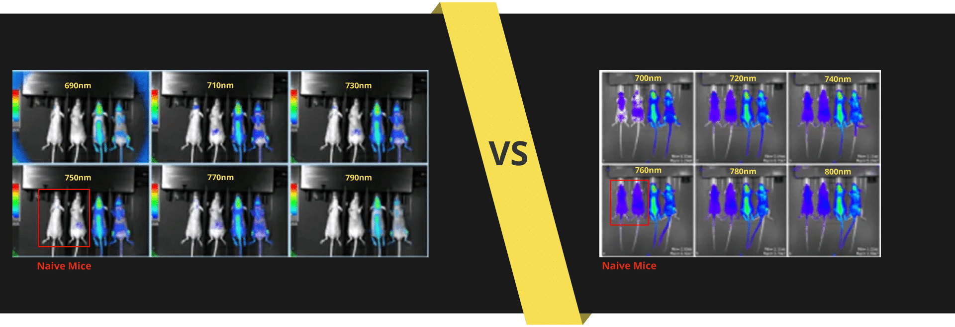 Out-of-band, excitation-based light is detected across a range of Em filters in white light based competitors. This non-specific, out-of-band light, reflects off mice, reducing Signal/Noise ratio.